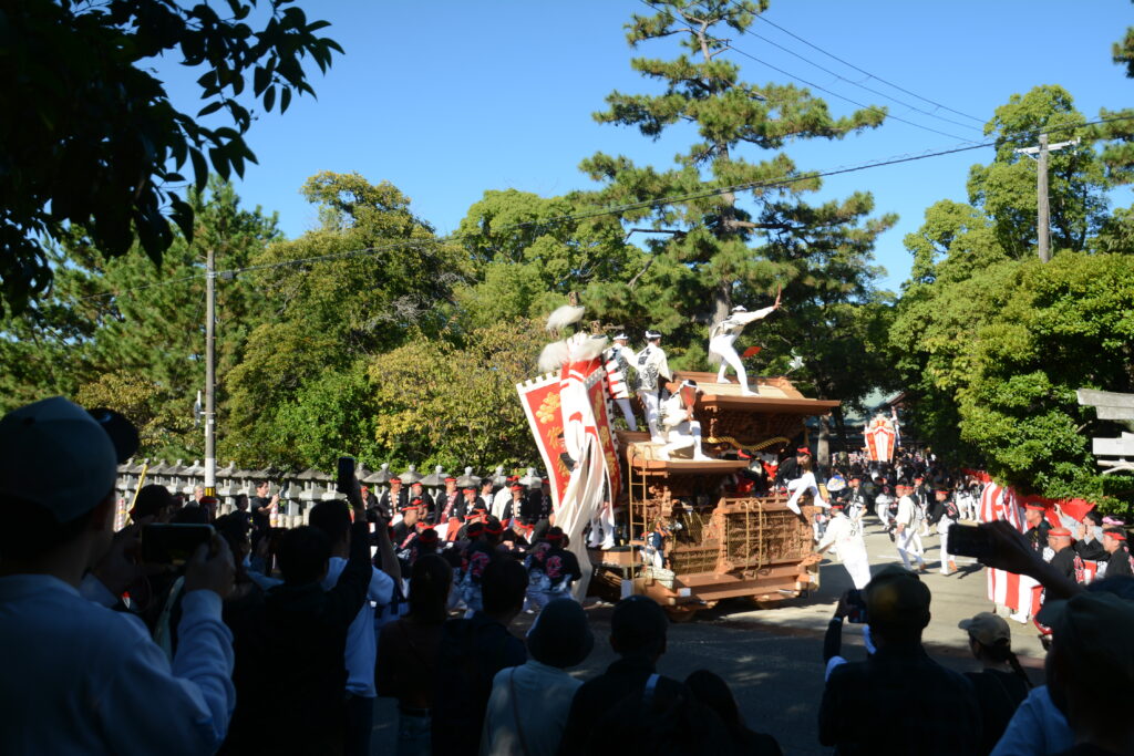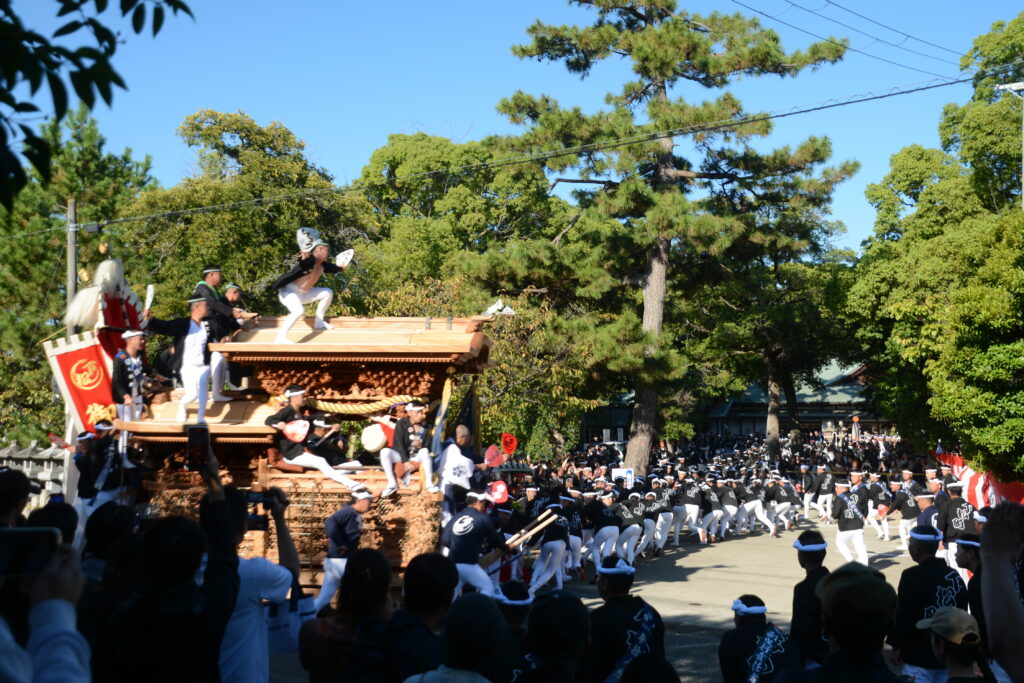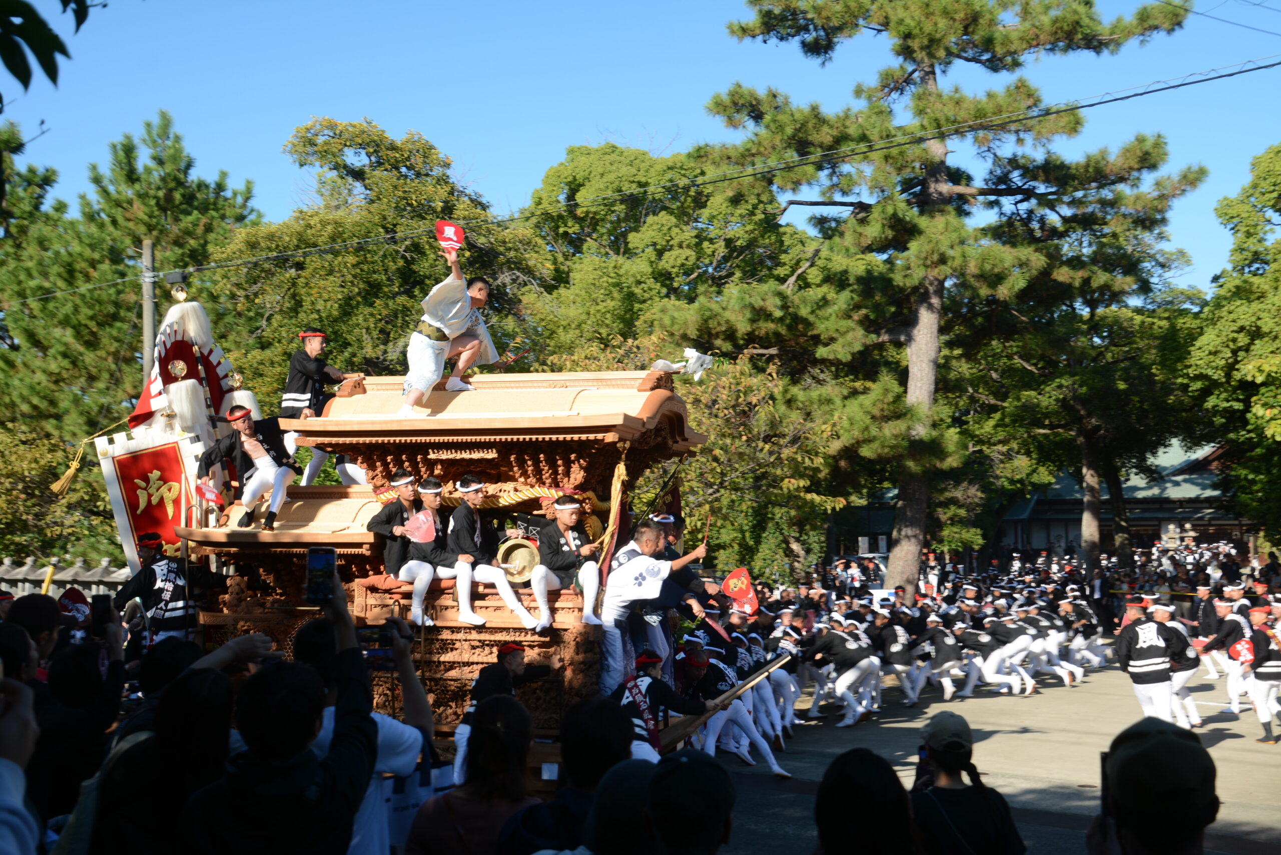 岸和田だんじり祭 令和7年度10月祭礼 2025.10.11 10月祭礼(南掃守地区)で西之内町・下松町・八阪町のだんじりが兵主神社に宮入されます。令和7年度10月12日(日)8時頃の予定※写真は2023年の様子 令和7年奉納大絵馬「巳年」岸和田市立産業高校美術部