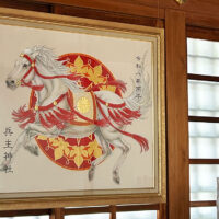 奉納干支絵 令和8年奉納干支絵「午」日月美輪様 2026.1.13 岸和田出身の日本画家、日月美輪様に令和8年の干支「午」の奉納絵をにご奉納いただきました。令和7年12月26日に清祓い式と御披露目が行われました。 令和8年奉納大絵馬「午年」岸和田市立産業高校美術部 関連記事 平成29年 奉納絵「丁酉」日月美輪様 令和4年奉納干支絵「壬寅」日月美輪様 令和5年奉納干支絵「癸卯」日月美輪様 平成30年奉納干支絵「戌成」日月美輪様